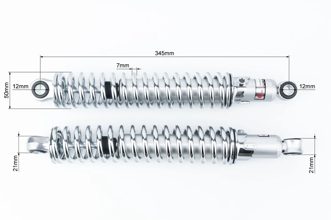 Амортизатор задній 345мм, D-50мм (втулка 12мм / втулка 12мм) регулир., хром к-кт 2шт, Мінск, YQ-340301