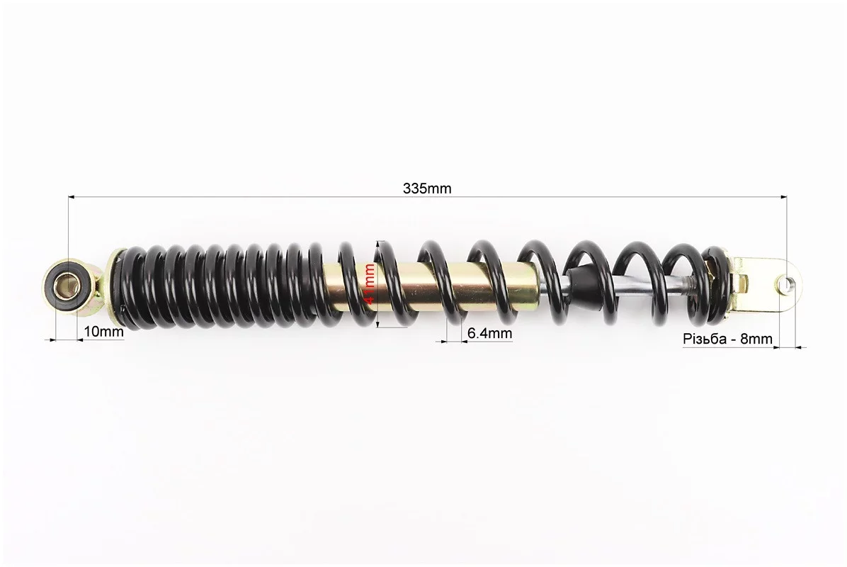 Відгуки Амортизатор задній GY6 - 335мм*d41мм (втулка 10мм / вилка 8мм), чорний, FIX-206511