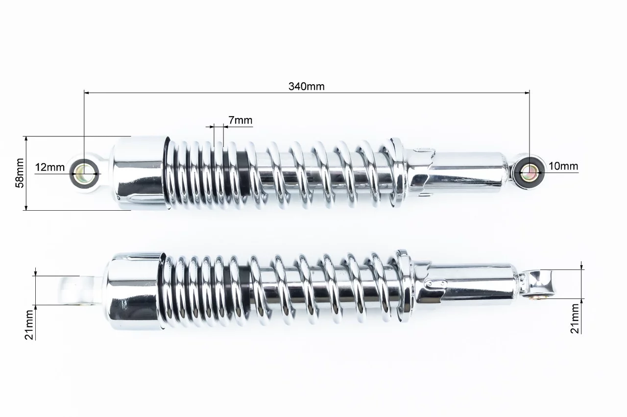 Відгуки Амортизатор задній JH/CB/CG-340мм*d-58мм (втулка 12мм / втулка 10мм) стакан, регул., хром к-кт 2шт, ЗЧ-МОТО, YQ-338288