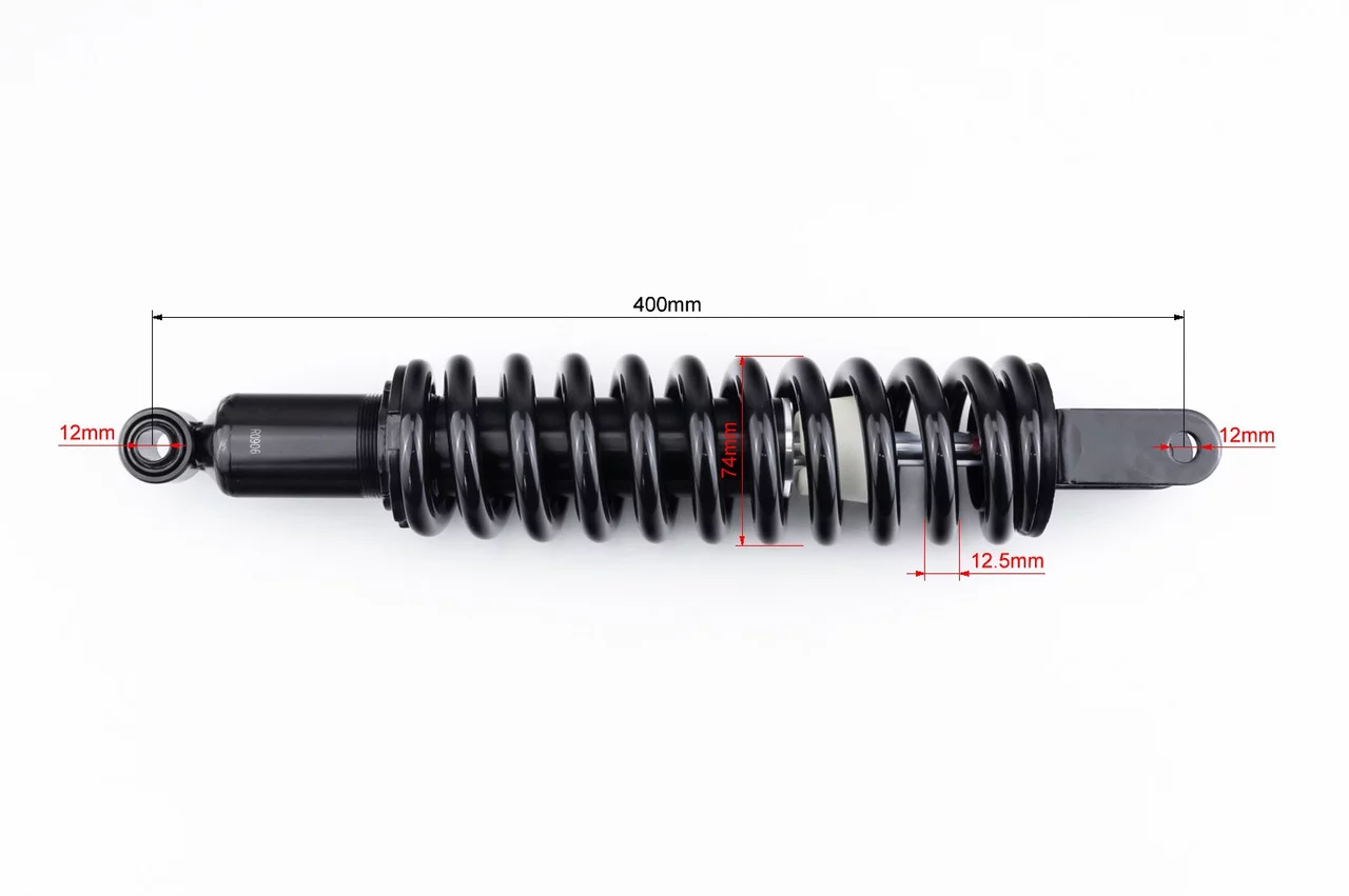 Відгуки Амортизатор задній МОНО 400мм, d-74мм (втулка 12мм/вилка 12мм) регул., чорний, Loncin LX200GY-3, ЗЧ-МОТО, YQ-324407