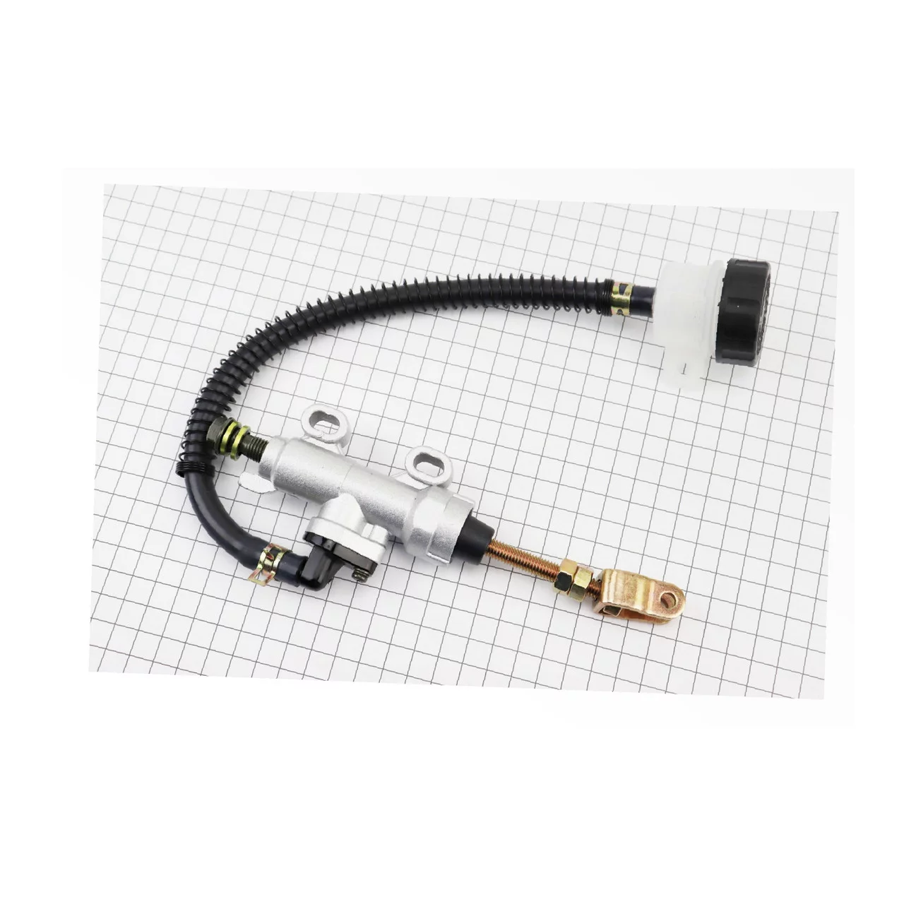 Гальмівний циліндр головний задній, мотоцикли/ATV (кріплення: min-33мм; max-56мм) тип 1, сріблястий, ЗЧ-МОТО