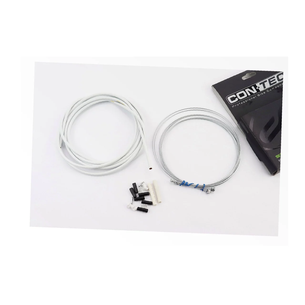 Гальмівний комплект універсальний "ПОВНИЙ" (сорочка 5мм х 3м, троса Galvanize 1350/2350мм, ковпачки, кінцевики, фіксатори, захист рами), білий, ВЕЛОЗАПЧАСТИНИ
