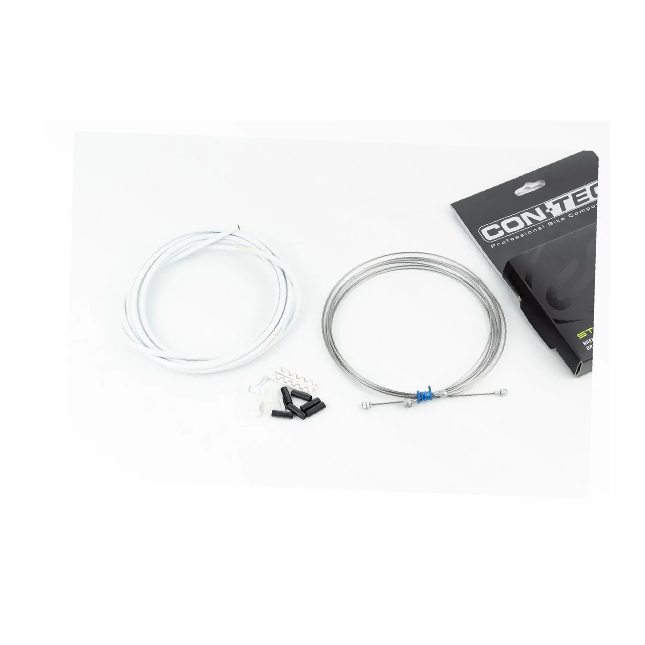 Гальмівний комплект універсальний "ПОВНИЙ" (сорочка 5мм х 3м, троса Slick Stainless 1350/2350мм, ковпачки, кінцевики, фіксатори, захист рами), білий, ВЕЛОЗАПЧАСТИНИ