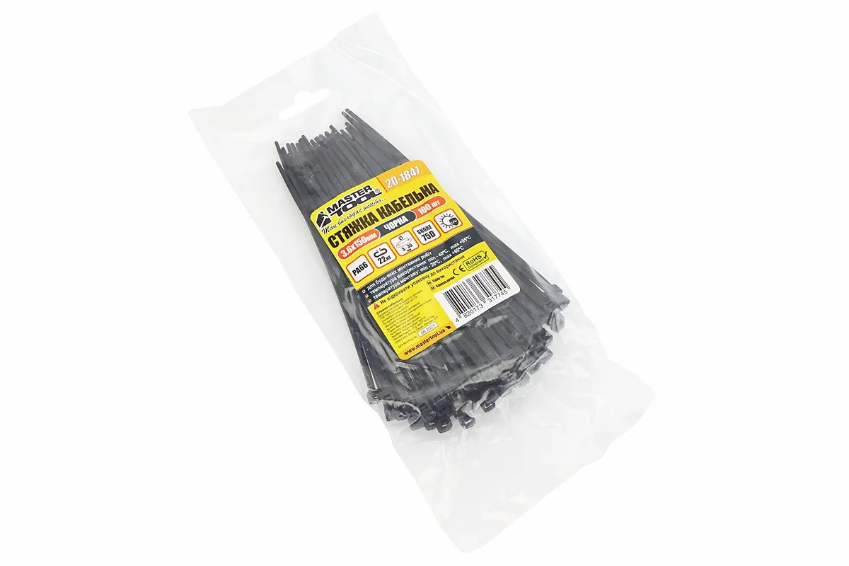 Хомут-стяжка пластикова 3,6x150мм к-кт 100шт, чорний 20-1847, FIX-209644