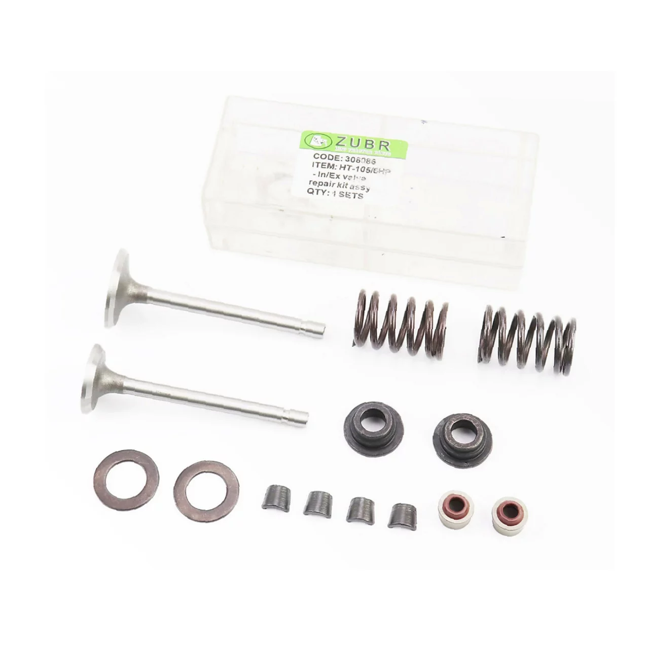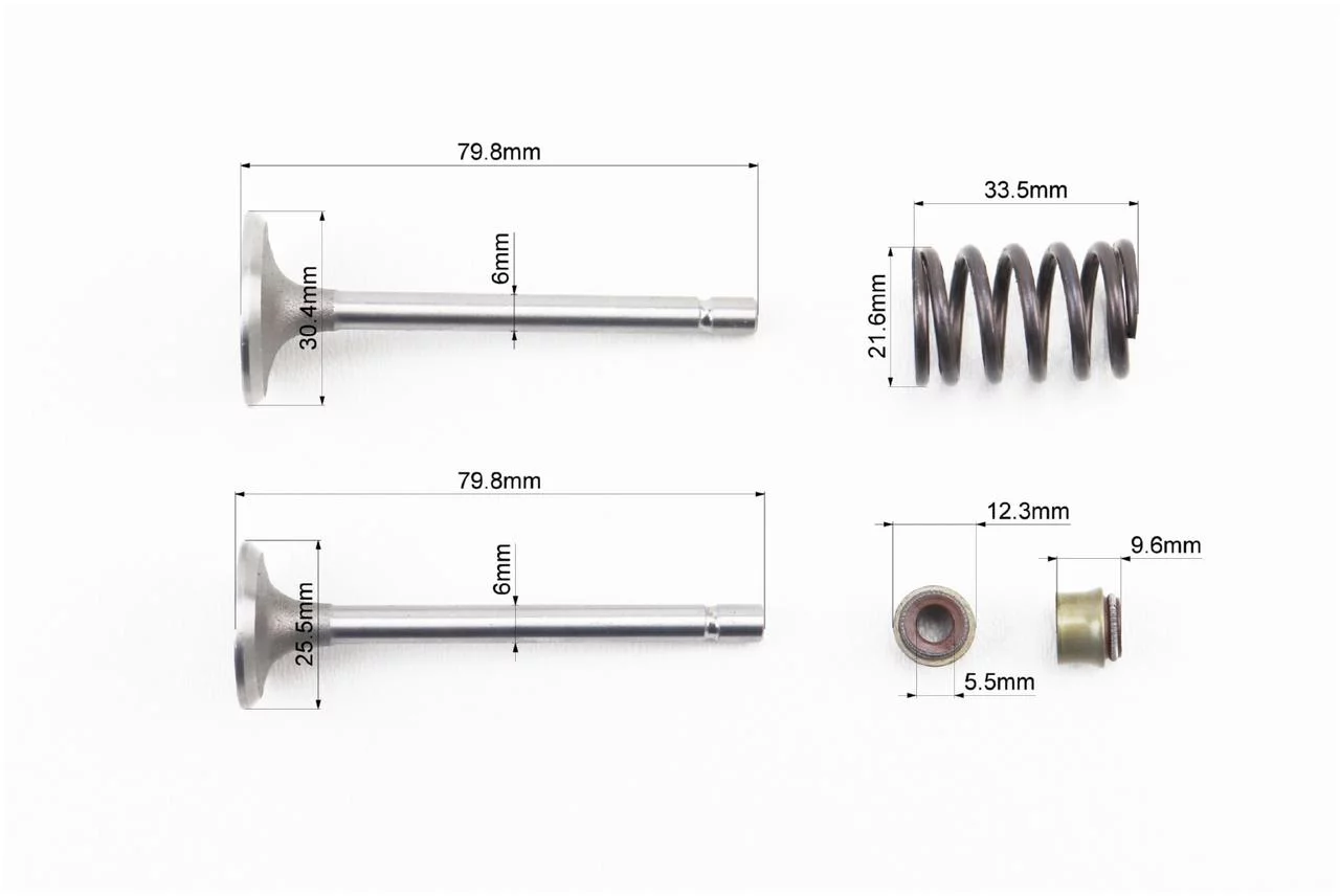 Відгуки Клапани впускний (H-79,8; D-30,4; d-6), випускний (H-79,8; D-25,5; d-6) к-кт 2шт 178F+пружина-2шт+шайба -4шт+сухар-4шт, D178/186F,