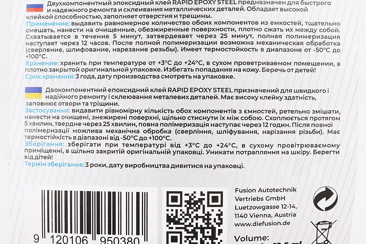 Відгуки Клей двокомпонентний для металевих деталей "EPOXY-STEEL", 30g, FIX-304552