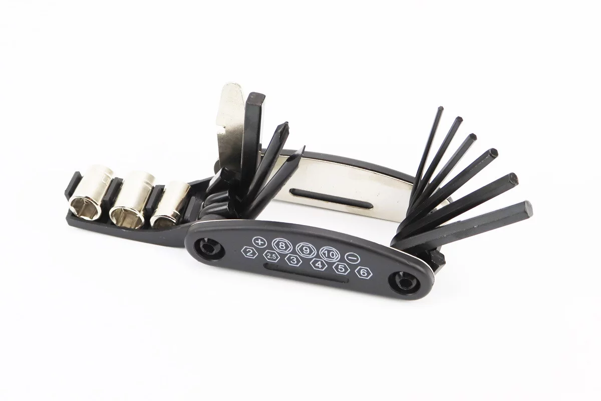 Ключ-набір 13 предметів (шестигранники 2,2.5,3,4,5,6 мм, відкидний спицевий ключ, викрутки пряма та фігурна, головки 8,9,10 мм,
