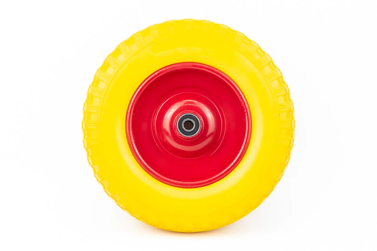Колесо на тачку "ПІНОПОЛІУРЕТАН" 4,00-6, пром-підшипники під вісь 12мм, жовто-червоне, ШИНИ