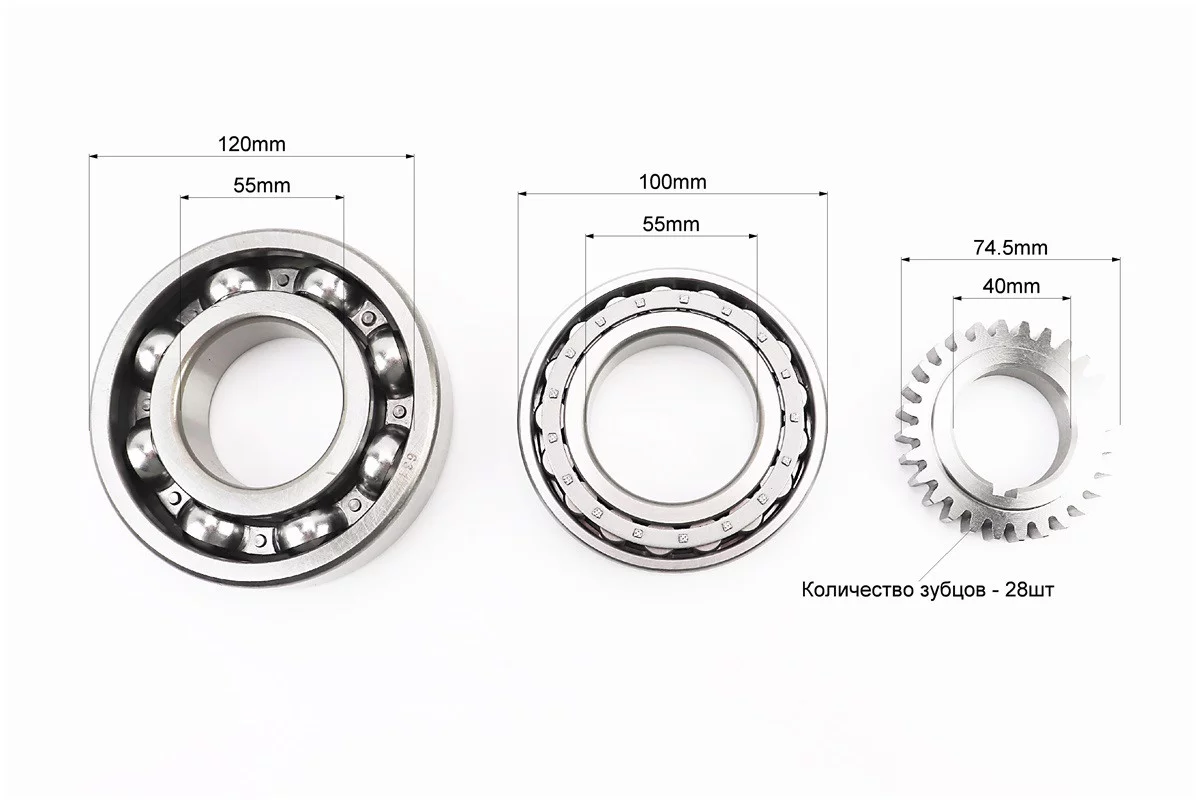 Колінвал R185N/R190N (Dболта-М12x1,5, Dшейки-52mm, H-105mm) +підшипники+шестерня