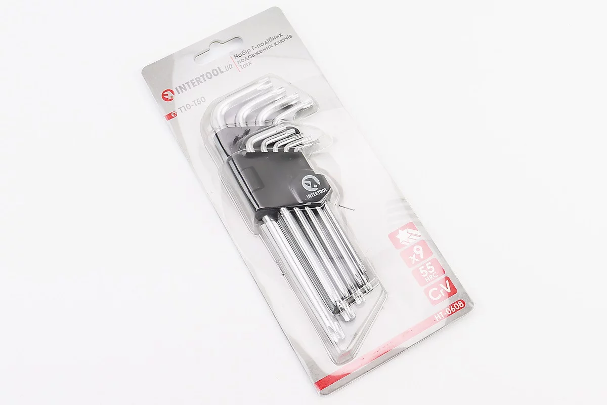 Відгуки Набір Г-подібних ключів подовжених TORX (T10/T15/T20/T25/T27/T30/T40/T45/T50) CrV HT-0608, FIX-702187