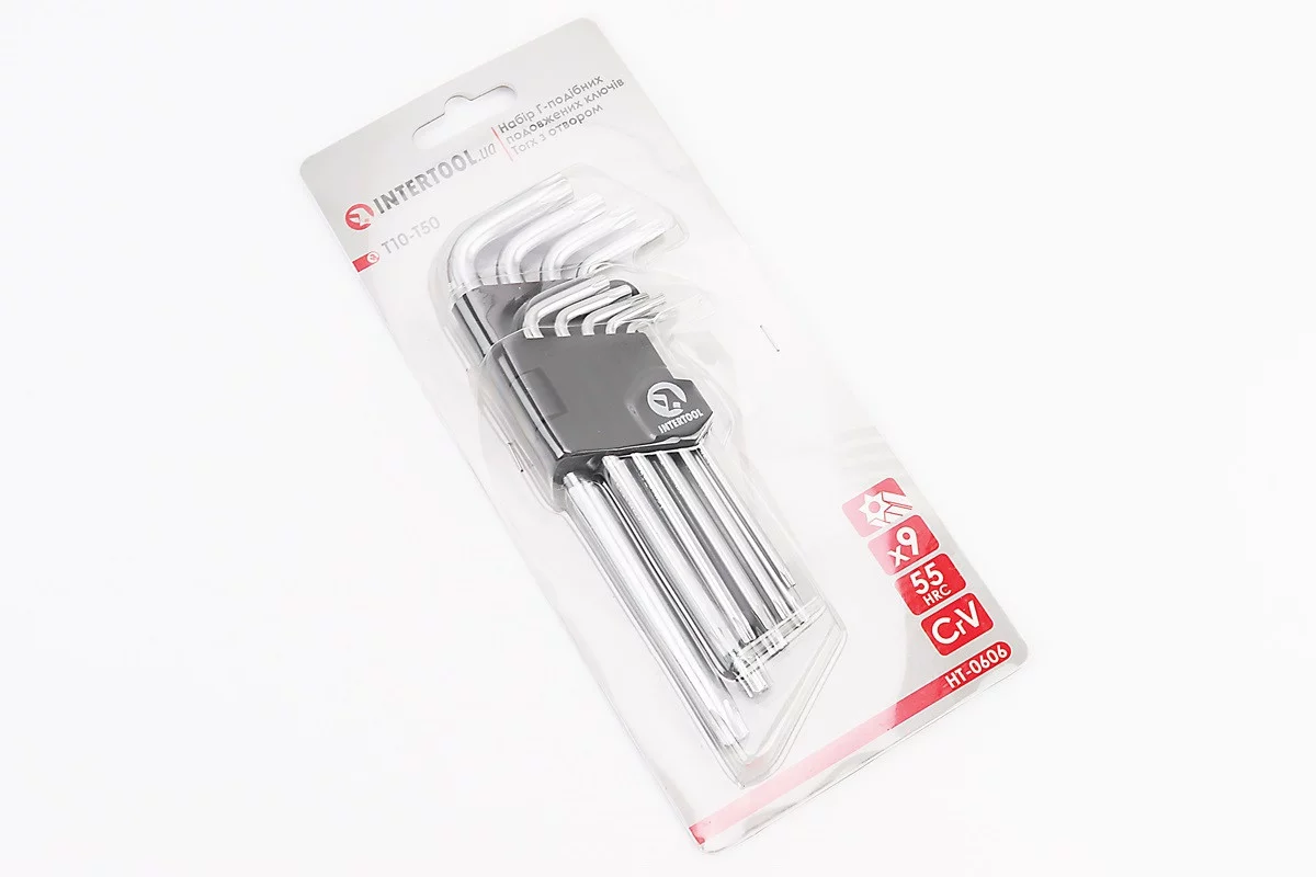 Відгуки Набір Г-подібних ключів подовжених з отвором TORX (T10/T15/T20/T25/T27/T30/T40/T45/T50) CrV HT-0606, FIX-702188