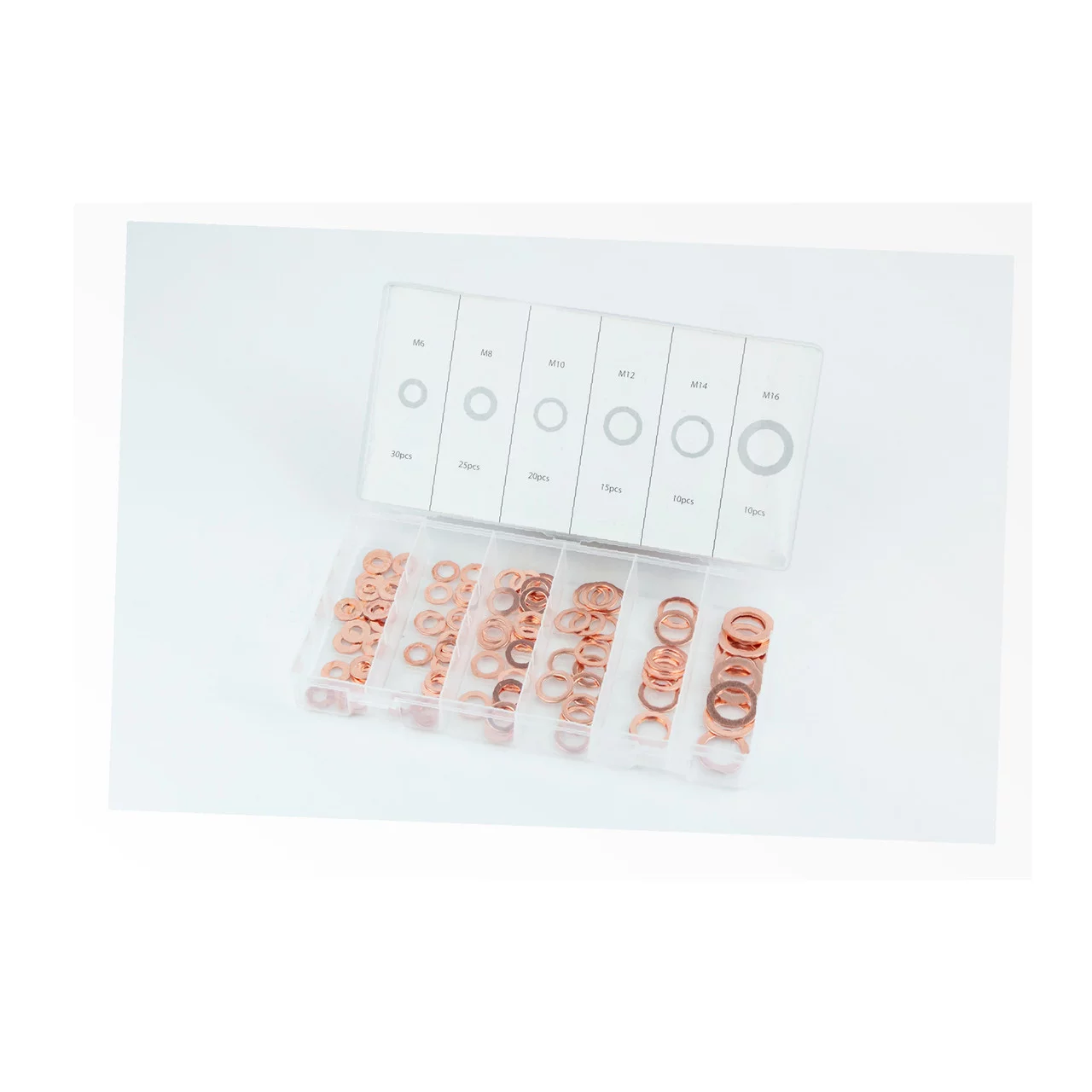 Набір мідних шайб (6х10х1, 8х14х1, 10х16х1, 12х16х1,5, 14х20х2, 16х22х1,5) 6 видів, 110шт, Різне-м/б