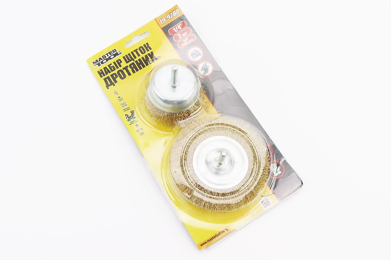 Набір щіток 2шт-торц./диск. зі стрижнем 1/4" D-75/100мм з латуньованого рифленого дроту (19-9200), Витратні матеріали
