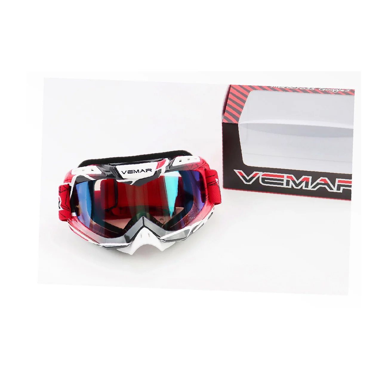 Окуляри кросові/ендуро/АТV, біло-червоно-чорні (дзеркальне скло), VM-1016C, ШОЛОМИ, YQ-330832