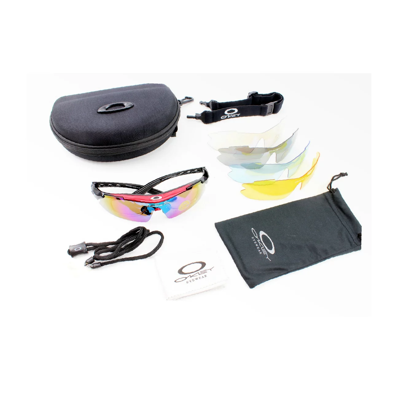 Відгуки Окуляри з набором для догляду, змінні лінзи 5шт, в твердому чохлі, червоно-чорні, ВЕЛОЕКІПІРУВАННЯ, YQ-408014