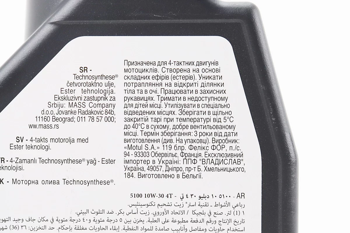 Олива 4T 10W-30 - напівсинтетична мотоциклетна "5100 Technosynthese", 1L