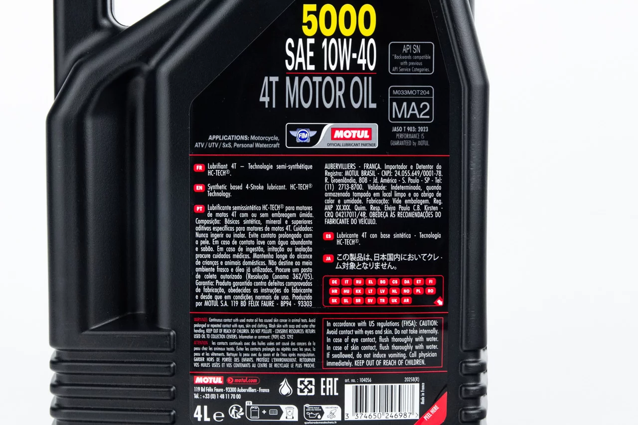 Відгуки Олива 4T 10W-40 напівсинтетична для мототехніки "5000 MA2", 4L, МОТОХІМІЯ, YQ-304317