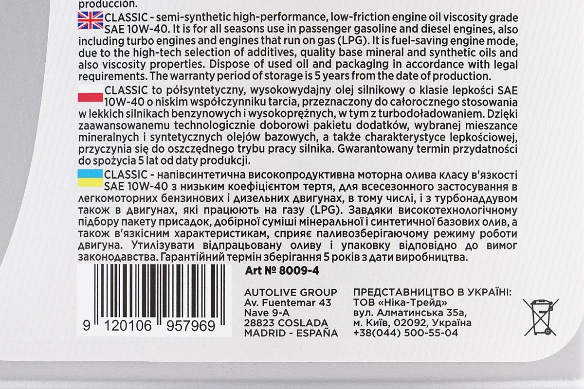 Олива 4T 10W-40 - напівсинтетична універсальна "Classiс", 4L