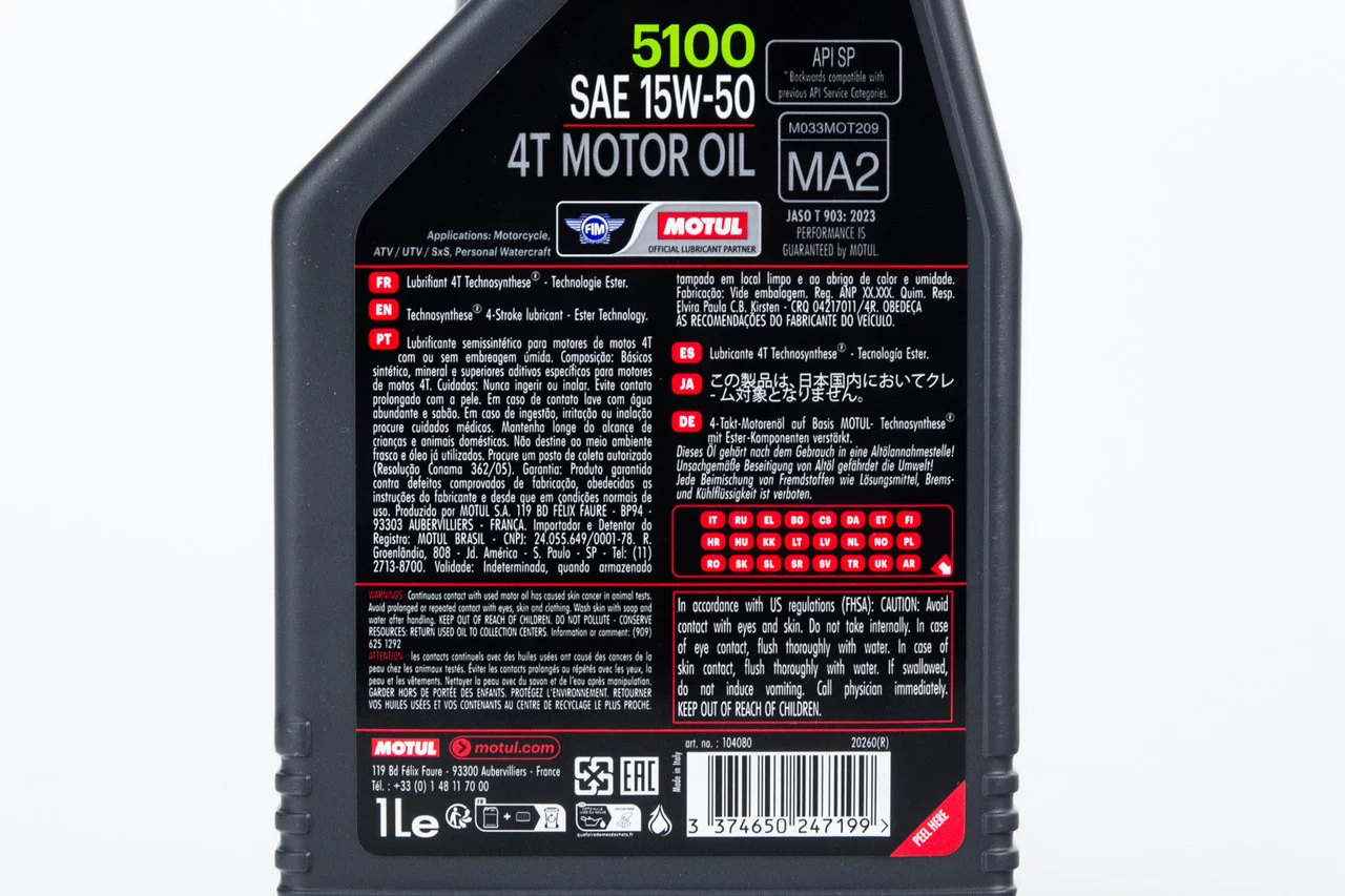 Відгуки Олива 4T 15W-50 напівсинтетична для мототехніки "5100 MA2", 1L, МОТОХІМІЯ, YQ-304158