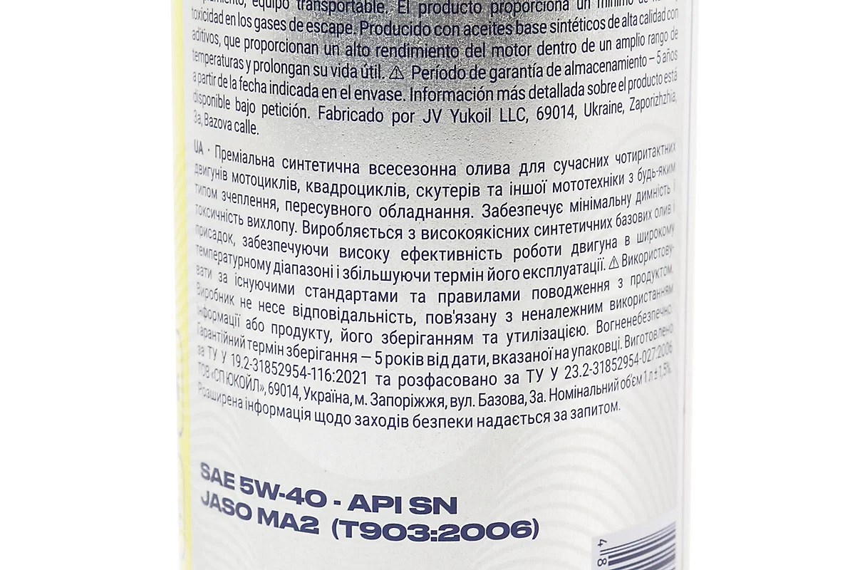 Олива 4T 5W-40 - синтетична універсальна "SYNTHETIC", 1L, Metal