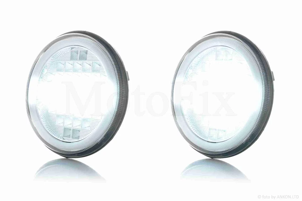 Фара мото діодна, кругла, D177, H4, 2 габарити (білий/жовтий) #C80-3S1