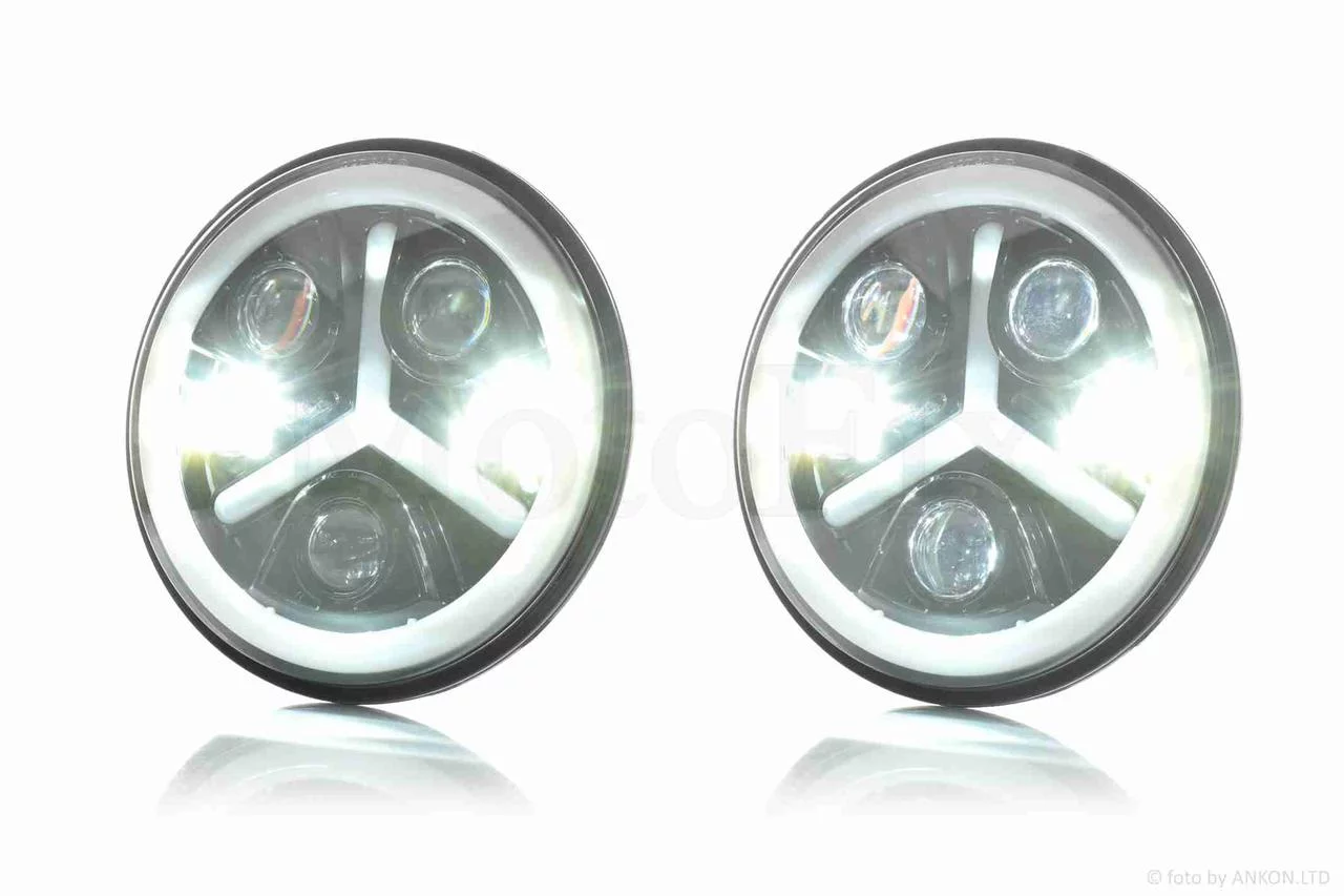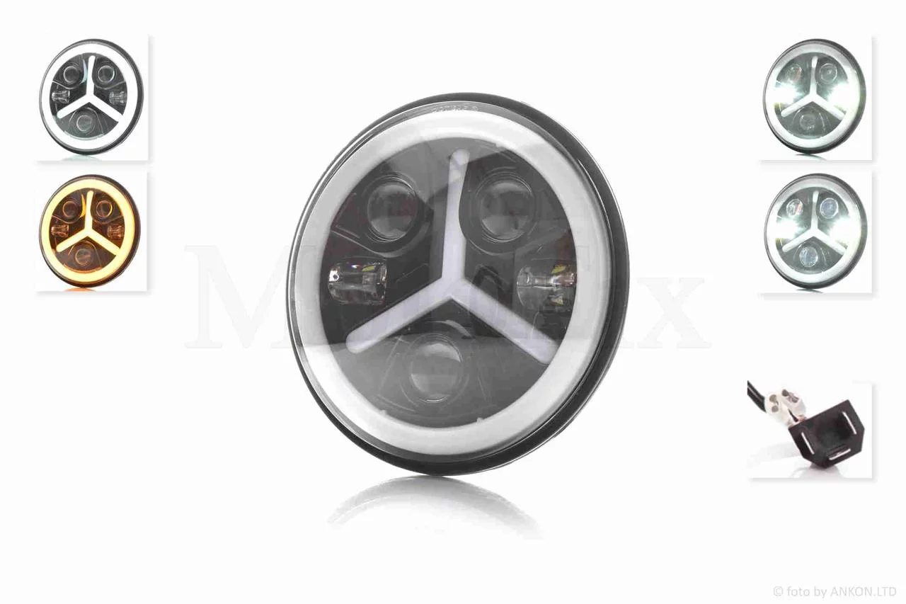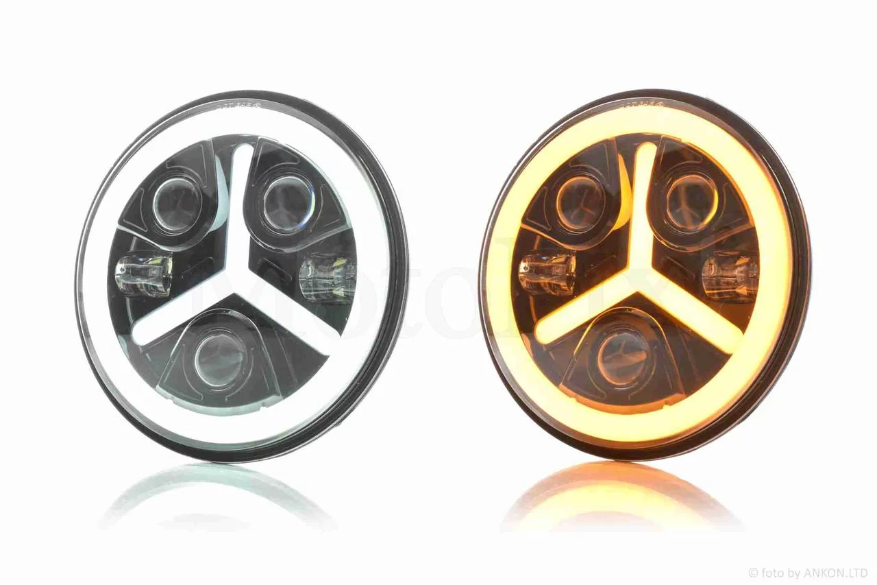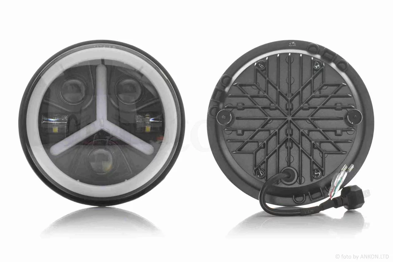 Фара мото діодна, кругла, D178, H4, 3 габарити (білий/жовтий/синій) #C88-1S1, QT-037096