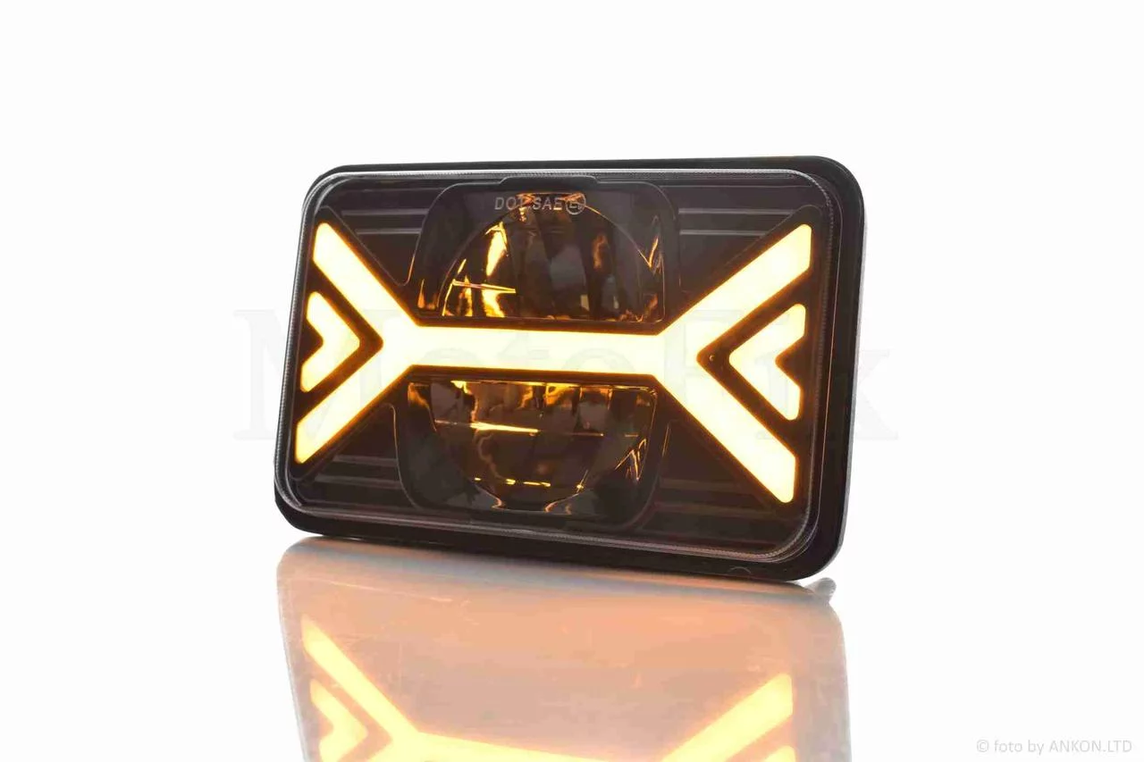Фара мото діодна, прямокутна, 168*107, H4, IP67, білий/жовтий габарит #C103-7Z1