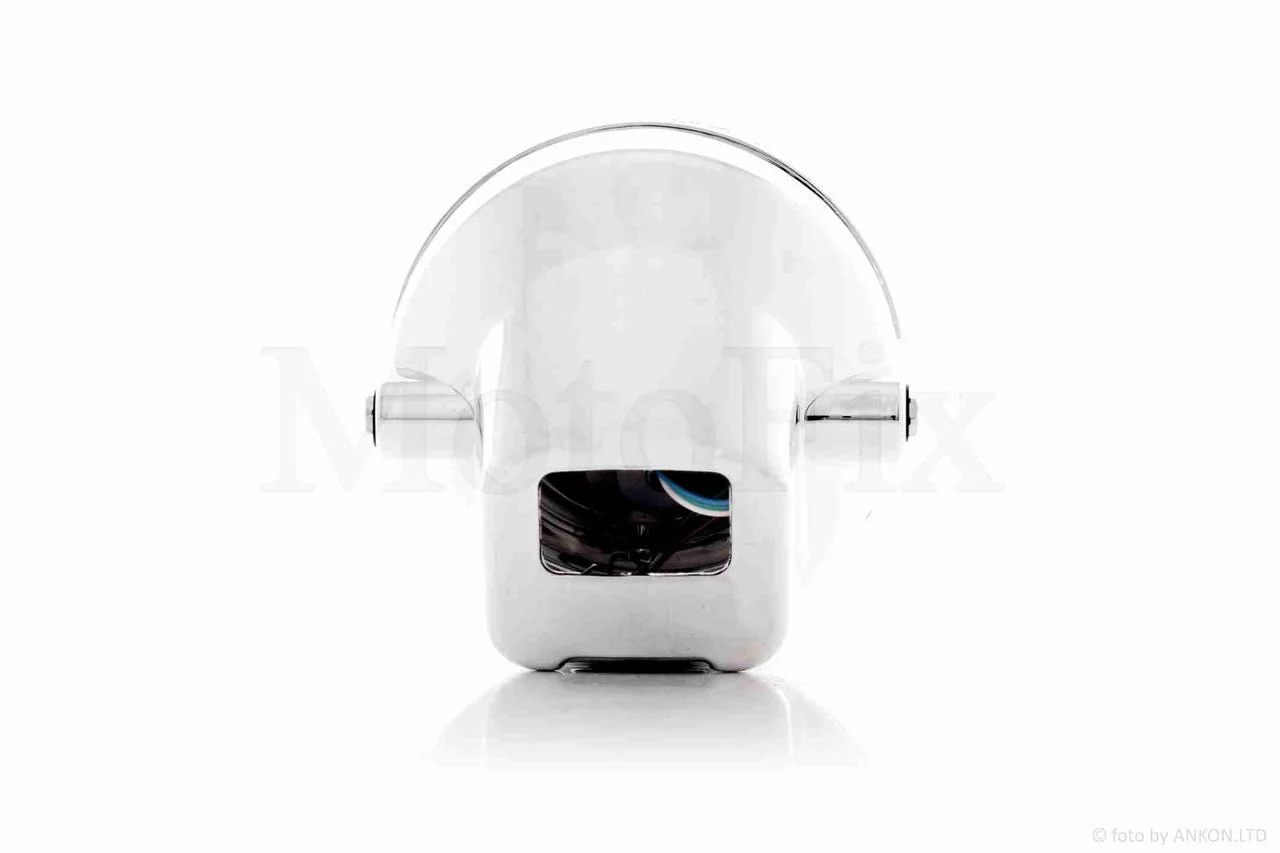 Фара мото, кругла, хром із козирком "S"