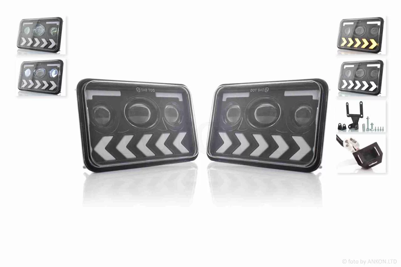 Фари ATV/авто (пара) діодні, прямокутні, 168*108, H4, динамічні повороти #C113-L/R-3Z1_