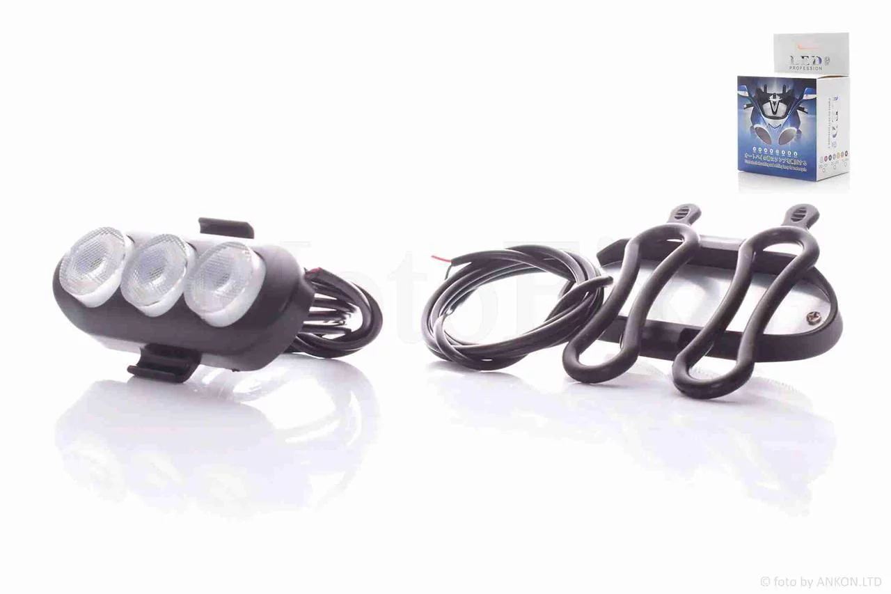 Фари додаткові (пара) габарити, 84-32mm, 3 діоди, гумове кріплення на кермо/амортизатори