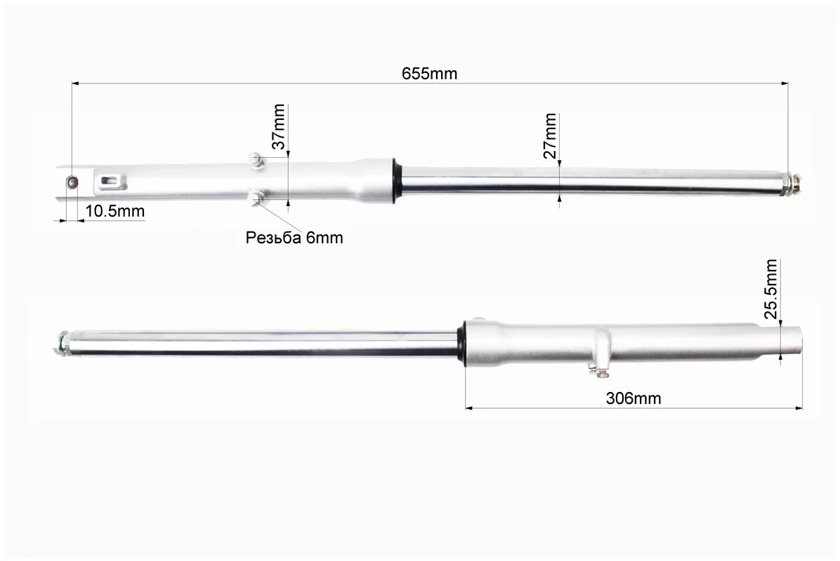 Амортизатор передний (перья), лев., прав. к-кт L-655мм; d-27мм, ось 10мм, FIX-319107