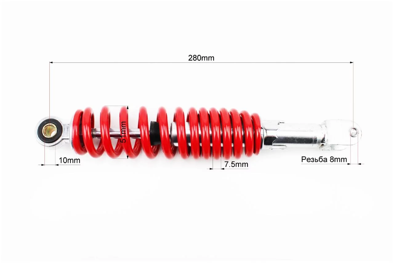 Отзывы Амортизатор задний GY6/Honda-280мм*D-51мм (втулка 10мм / вилка 8мм) регулир., красный, ЗЧ-СКУТЕР, YQ-328219