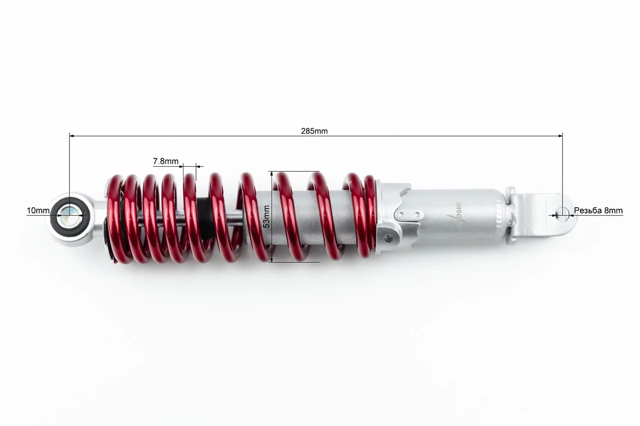 Отзывы Амортизатор задний GY6/Honda-285мм*D-53мм (втулка 10мм / вилка 8мм) регулир., красный, ЗЧ-СКУТЕР, YQ-363440