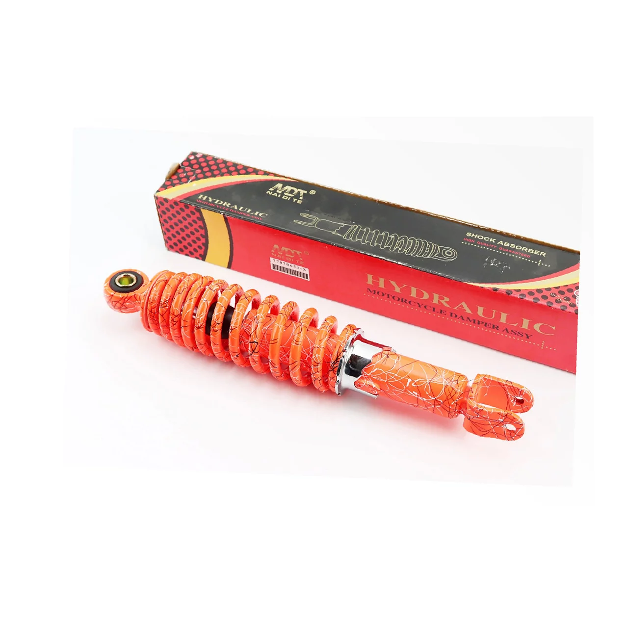 Амортизатор задний GY6/Honda-285мм*D-55мм (втулка 10мм / вилка 8мм) регулир., оранжевый "паутина", ЗЧ-СКУТЕР, YQ-328255