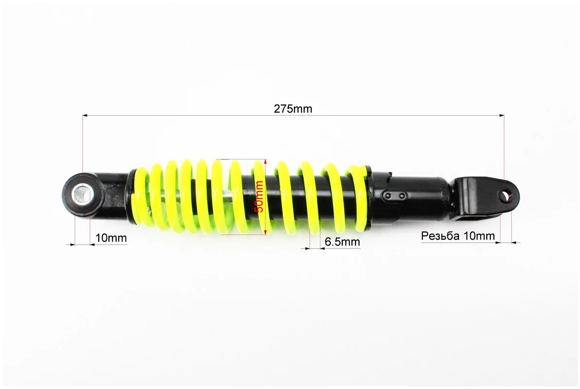 Отзывы Амортизатор задний GY6/Suzuki - 275мм*d50мм (втулка 10мм / вилка 10мм) регулир., лимонный, FIX-328252