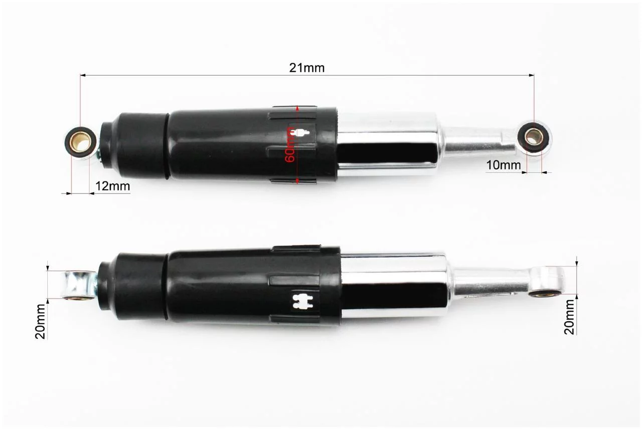 Отзывы Амортизатор задний JH/CB/CG-330мм*d60мм (втулка 12мм/втулка 10мм) закрытий регулир., чёрный к-кт 2шт, ЗЧ-МОТО, YQ-320271