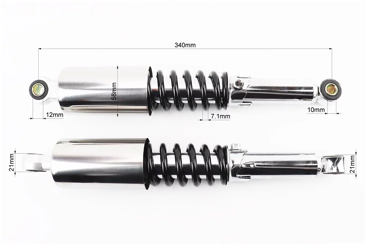 Амортизатор задний JH/CB/CG - 340мм*d58мм (втулка 12мм / втулка 10мм) со стаканом регулир., черный к-кт 2шт, FIX-324980
