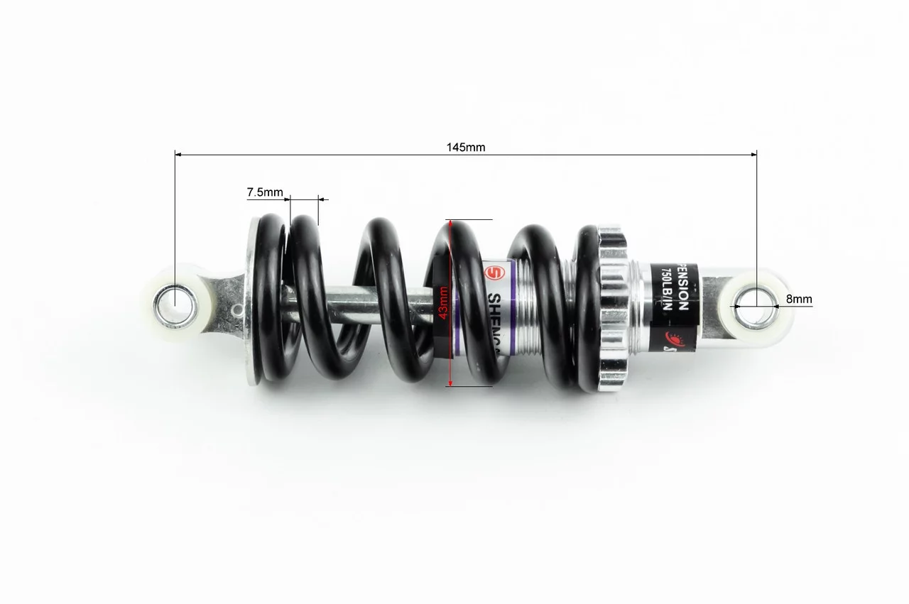 ATV детский-Амортизатор задний 145мм*d-43мм (втулка 8мм/втулка 8мм) регулир., чёрный, ЗЧ-ATV, YQ-335520