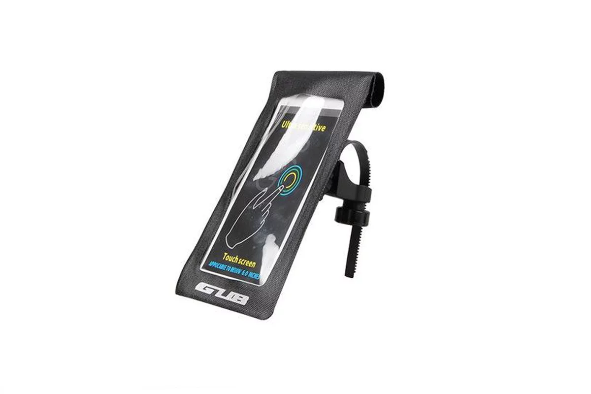 Держатель-чехол телефона 175х108мм на руль, Ziplock, сенсорная пленка, влагозащитный, быстросъёмный, регулируемый, чёрный GUB 919