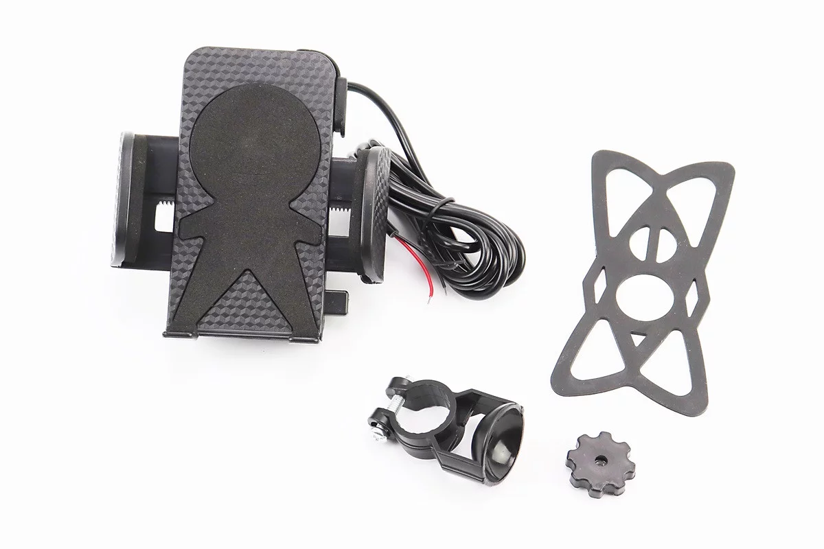 Держатель телефона на руль + USB зарядка (мин. ширина телефона 45мм, макс. ширина 110мм)