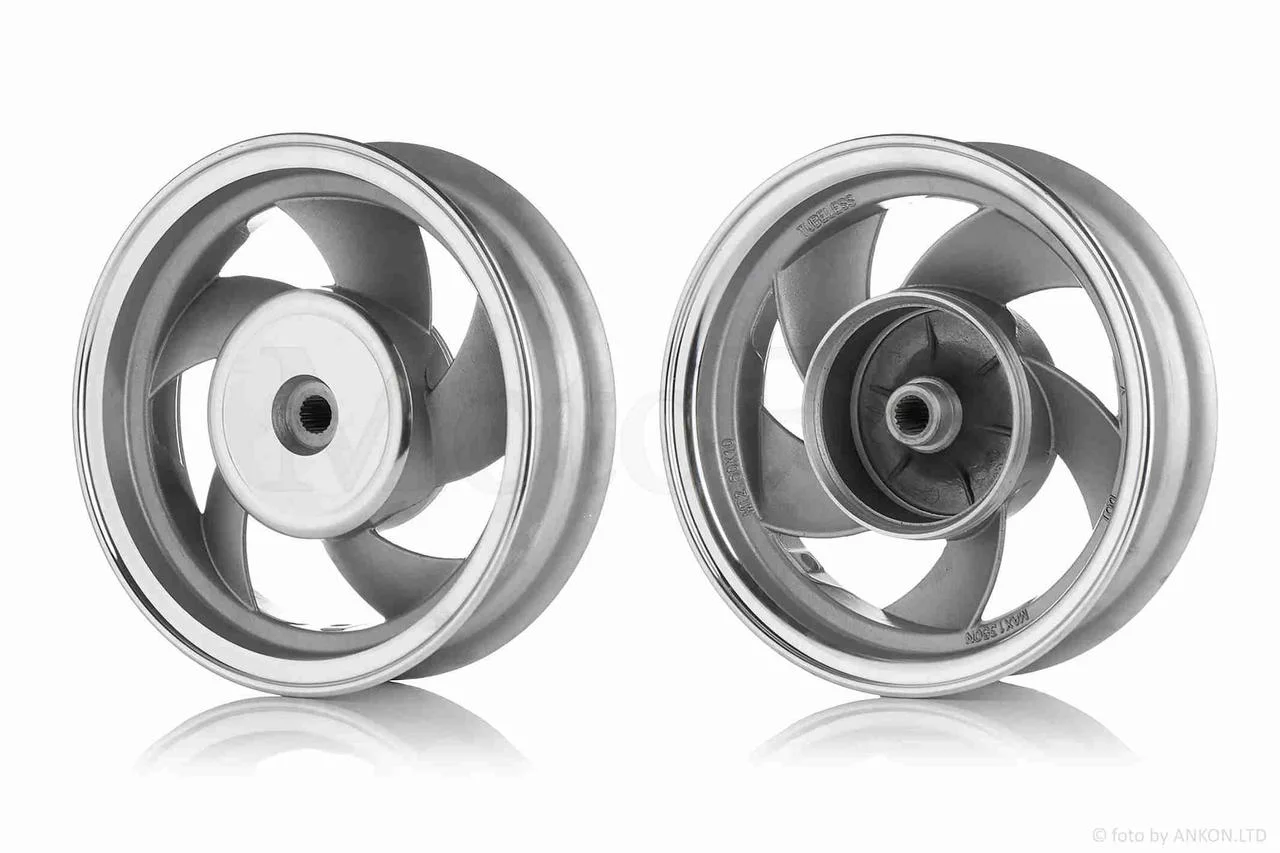 Отзывы Диск колеса задний 10"-2.50 литой, 19 шлицов, 5 спиц, барабан 110mm (пропеллер), QT-006599
