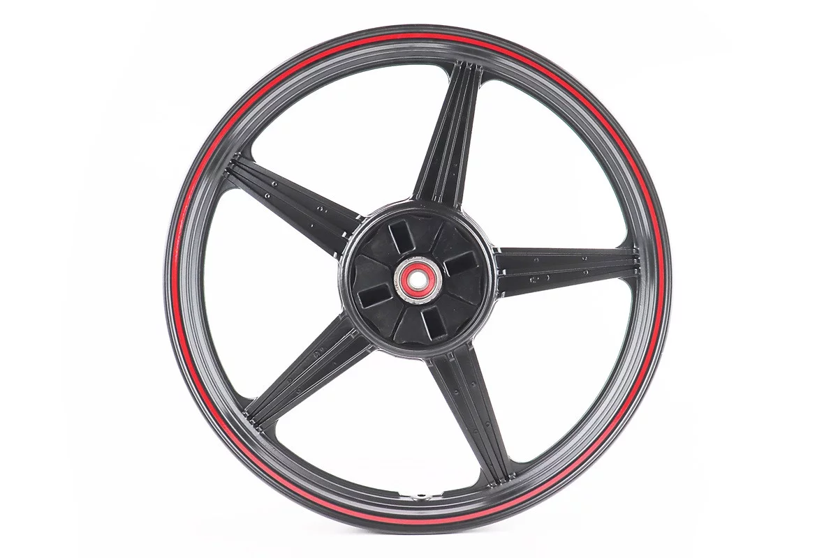 Отзывы Диск колесный задний литой 18Х1,85 (под резинки) "звезда" ЧЕРНЫЙ с красной полосой (ось 15мм), FIX-321759