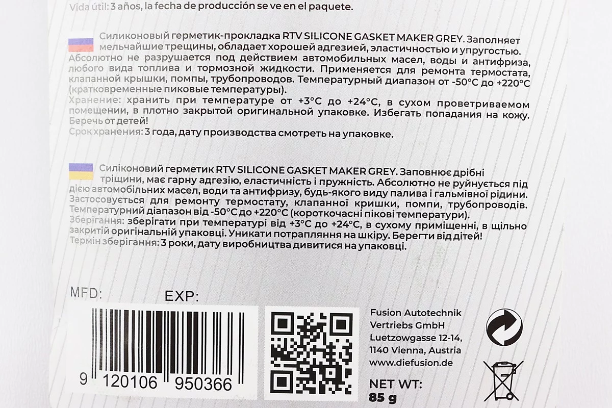 Отзывы Герметик силиконовый высокотемпературный СЕРЫЙ "Gasket Maker GREY " 85g, FIX-304559
