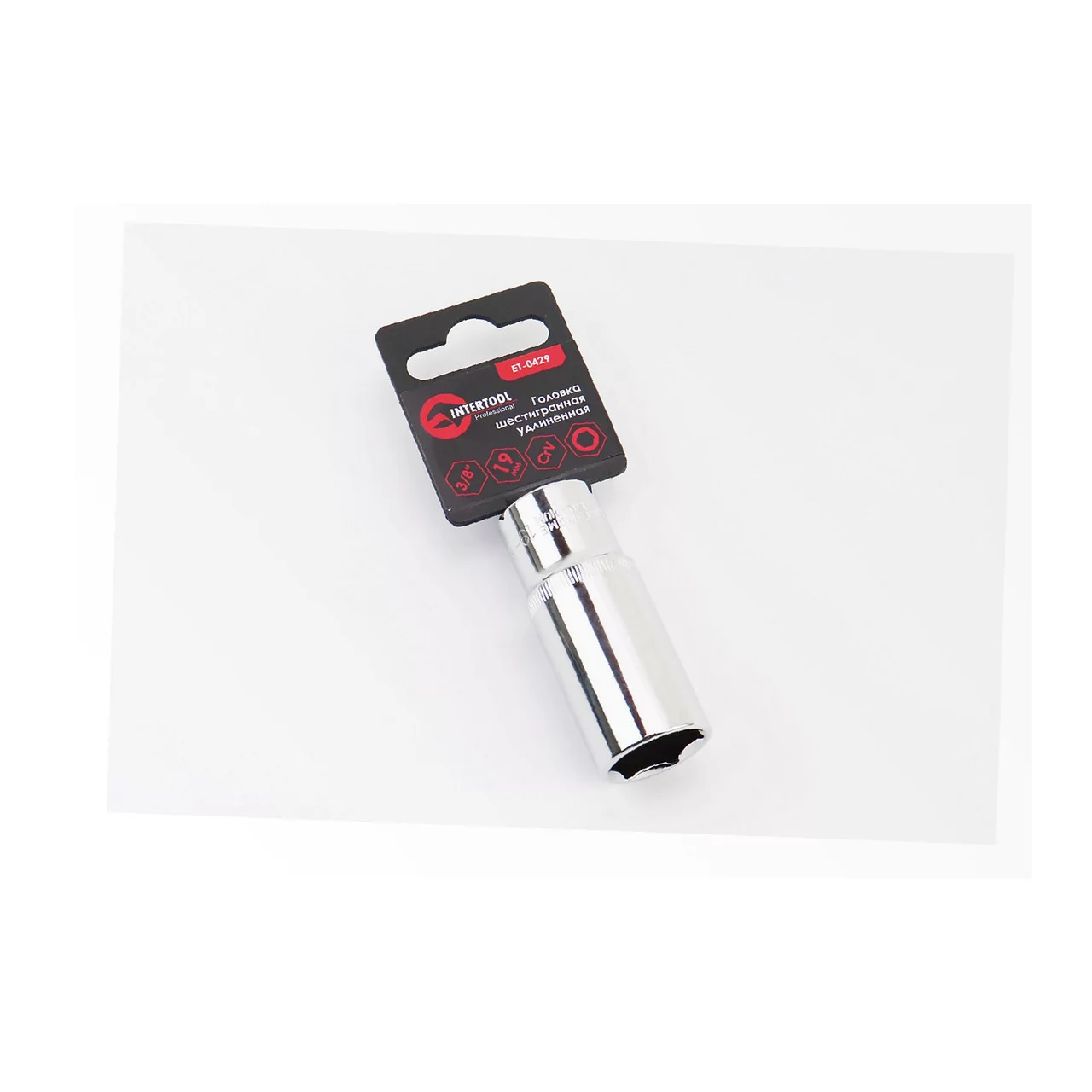 Головка торцевая 6-гранная 3/8" 19мм, удлинённая CrV (ET-0429), Ручний інструмент