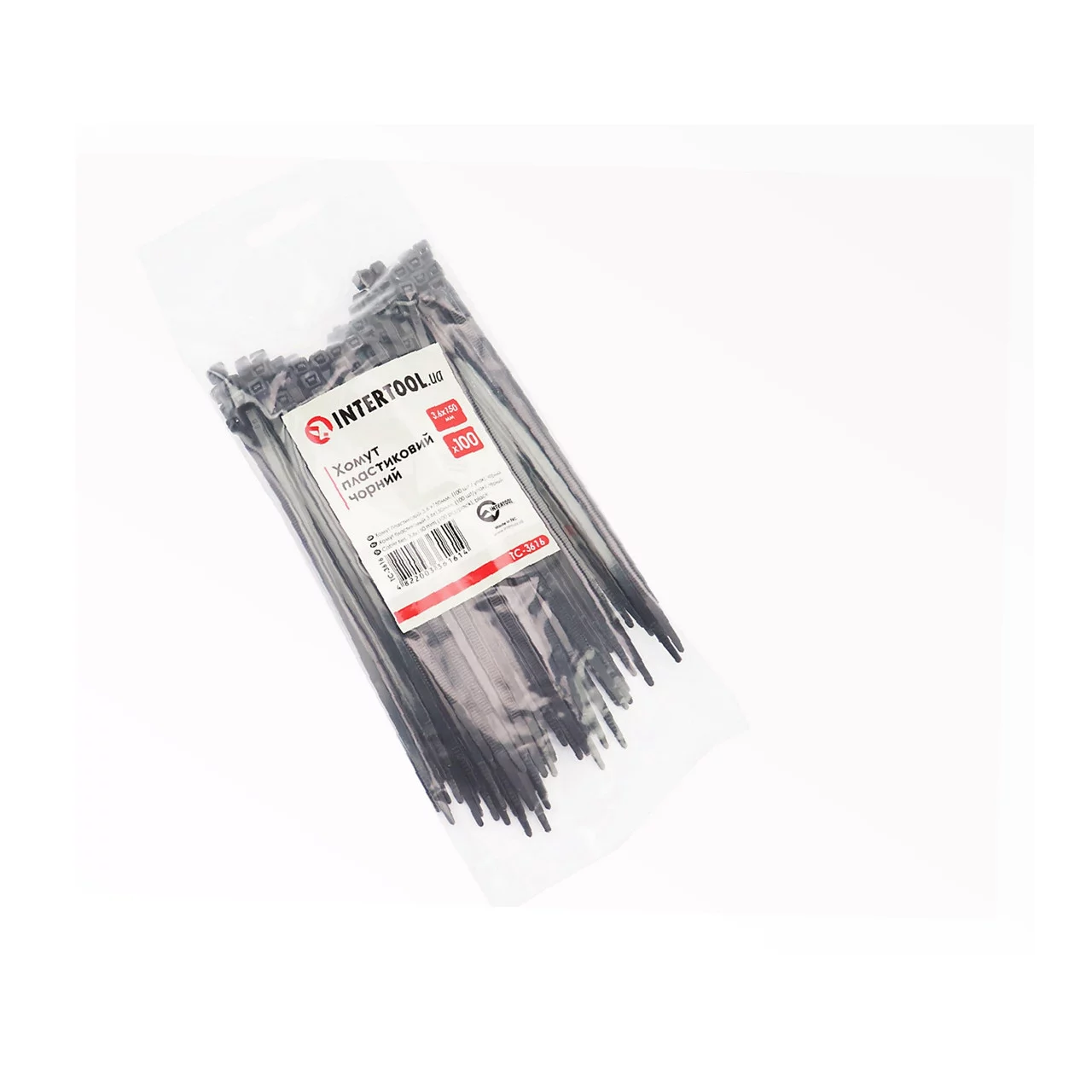 Хомут-стяжка пластиковый 3,6x150мм, к-кт 100шт, чёрный (TC-3616), Витратні матеріали