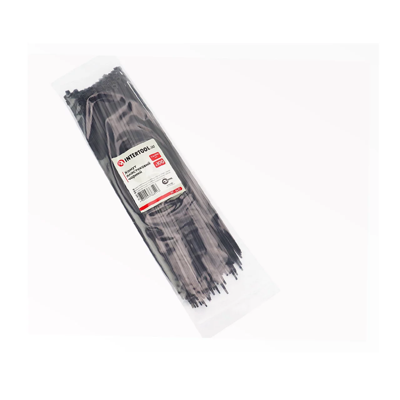 Хомут-стяжка пластиковый 3,6x300мм, к-кт 100шт, чёрный (TC-3631), Витратні матеріали