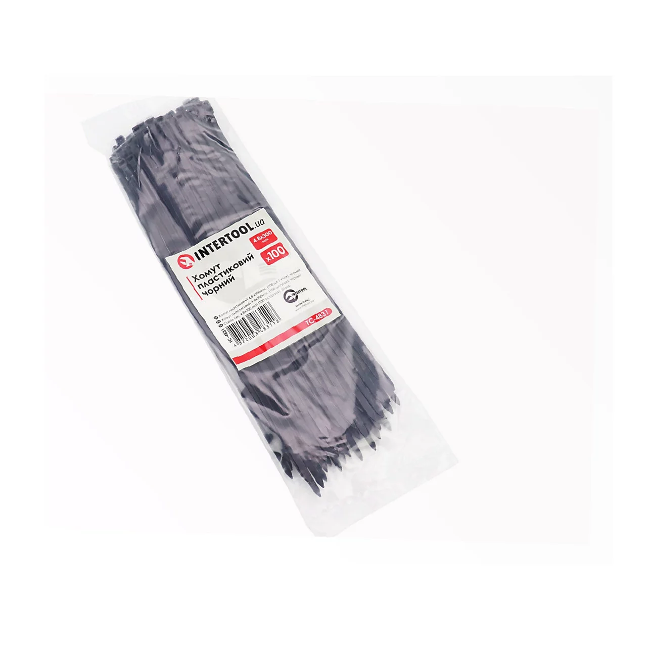 Хомут-стяжка пластиковый 4,8x300мм, к-кт 100шт, чёрный (TC-4831), Витратні матеріали
