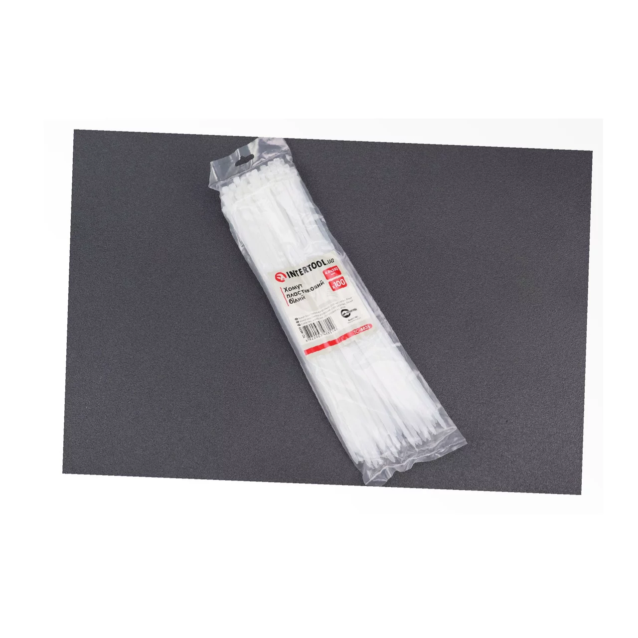Хомут-стяжка пластиковый 4,8x350мм, к-кт 100шт, белый (TC-4835), Витратні матеріали