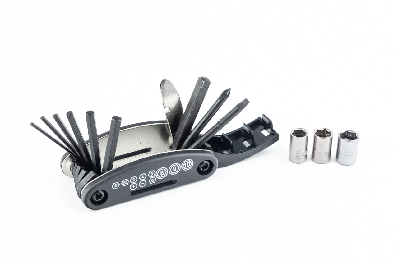 Ключ-набор 13 предметов (шестигранники 2,2.5,3,4,5,6мм, откидной спицной ключ, отвёртки прямая и фигурная, головки 8,9,10мм,