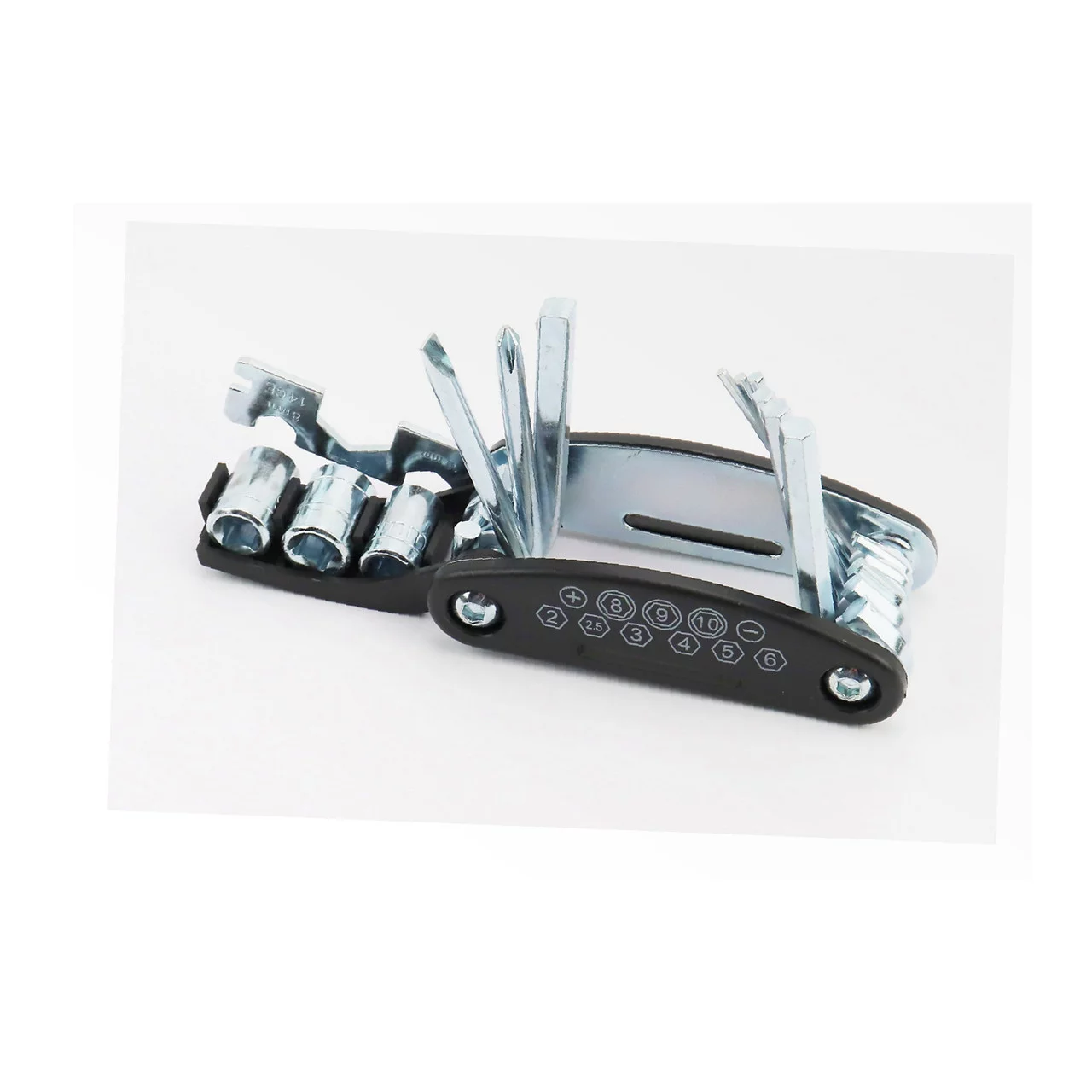 Ключ-набор 15 предметов (шестигранники 2,2.5,3,4,5,6мм, спицной ключ, отвёртки прямая и фигурная, головки 8,9,10мм, гаечные ключи